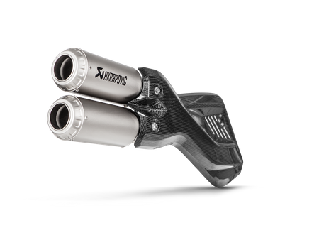 Slip-Ons represent the first step in the exhaust system tuning process, and they offer a great balance between price and performance. The Grand Prix–inspired twin conical mufflers are made entirely from titanium, a race-proven material. Beautifully finished with a carbon-fibre heatshield, the exhaust offers an increase in performance and a deeper, more rewarding sound, while meeting EC-ECE type approval.