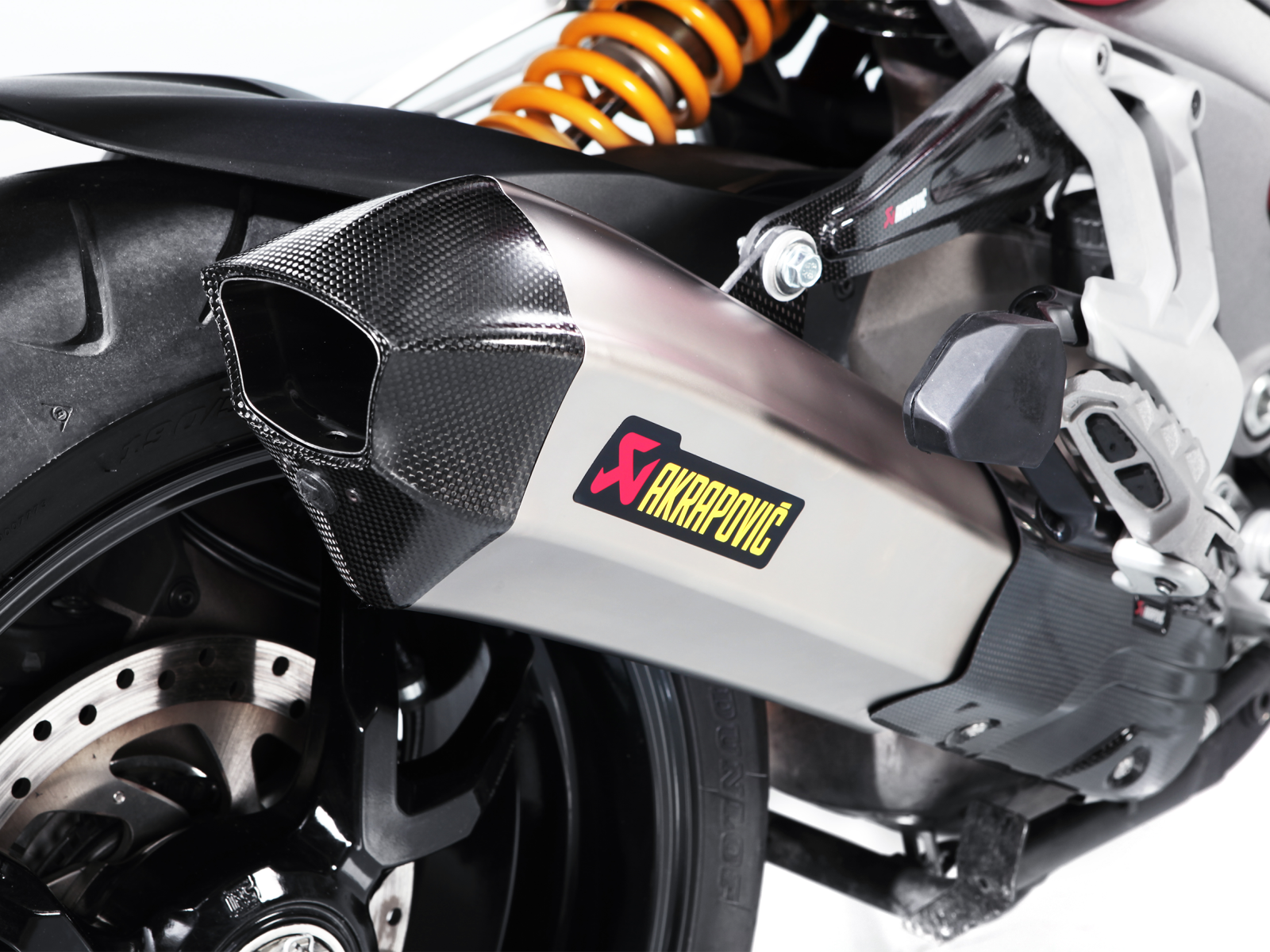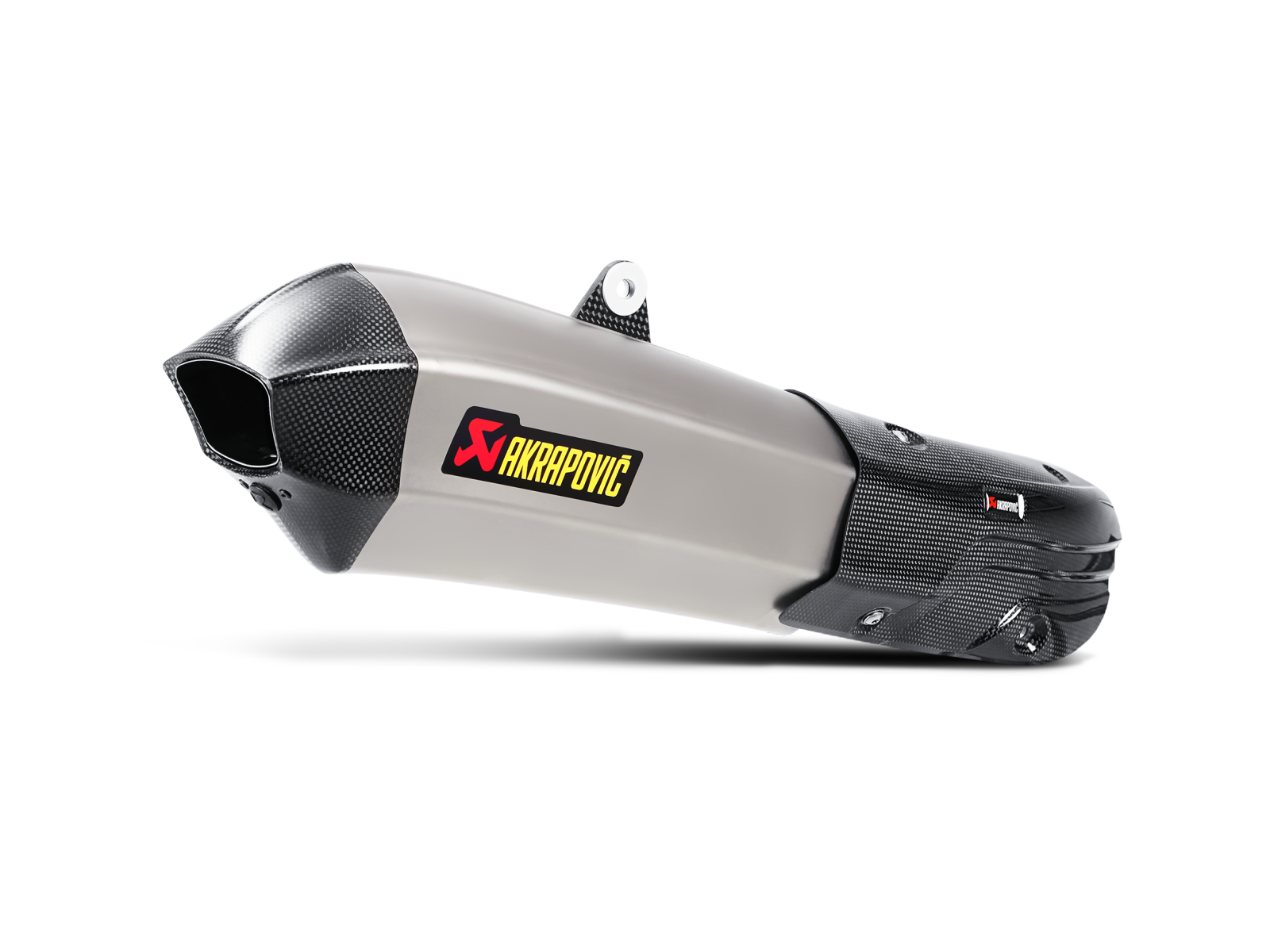 Opracowana na podstawie rewolucyjnego układu koncepcyjnego Akrapovič, zaprezentowanego po raz pierwszy na wystawie Intermot 2014 w Kolonii, pierwsza tytanowa wersja innowacyjnego układu wydechowego Akrapovič Slip-On jest zbudowana z wysokiej jakości tytanu, co zapewnia ogromną oszczędność masy w porównaniu z fabrycznym układem wydechowym. Pięknie wykończony osłoną termiczną i zaślepką z włókna węglowego, wydech zapewnia wzrost wydajności i głębszy, bardziej satysfakcjonujący dźwięk, spełniając jednocześnie homologację typu EC-ECE.