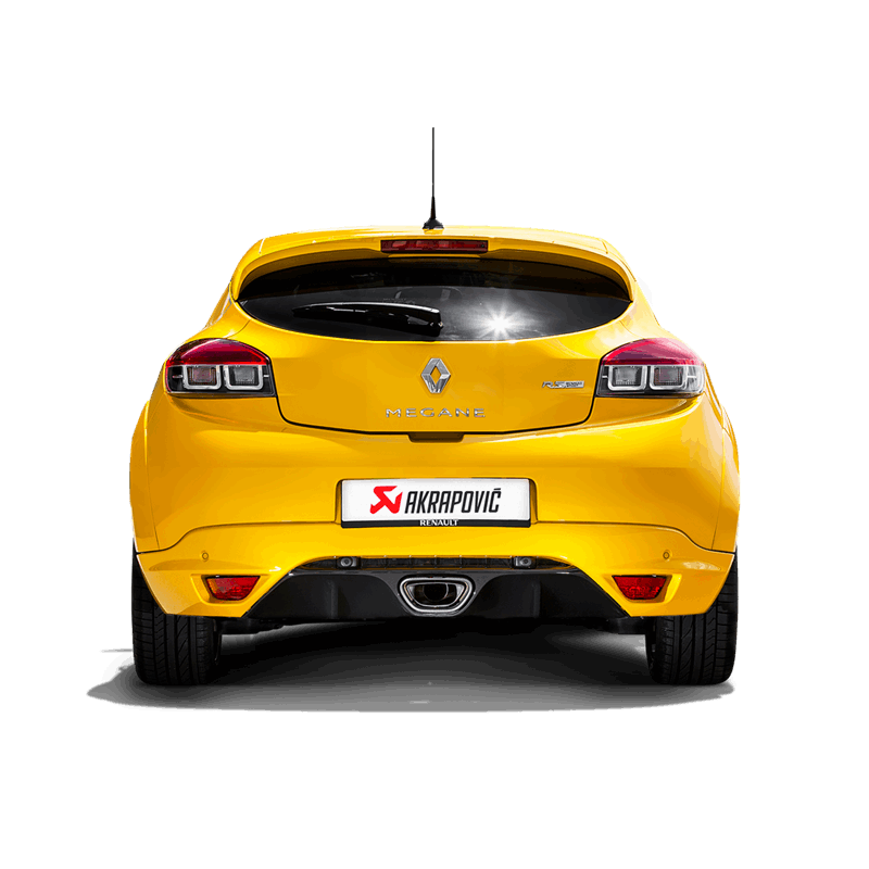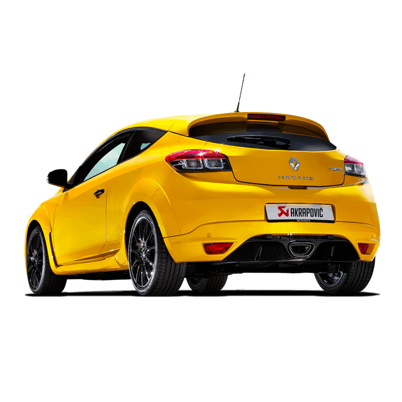 Układ wydechowy Evolution Line (Titanium) z karbonowymi końcówkami, dedykowany do  Renault Megane Coupe RS. Dedykowany by auto było jeszcze mocniejsze przy jednoczesnym lepszym wyglądzie oraz mocniejszym basowym dźwięku Akrapoviča.