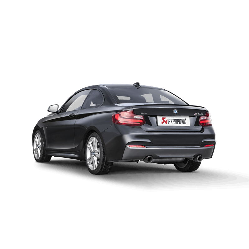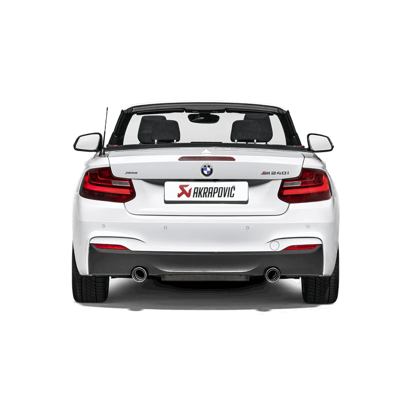 Układ wydechowy Evolution Line (Titanium) z karbonowymi końcówkami, dedykowany do BMW M240i (F22, F23). Dedykowany by auto było jeszcze mocniejsze przy jednoczesnym lepszym wyglądzie oraz mocniejszym basowym dźwięku Akrapoviča.