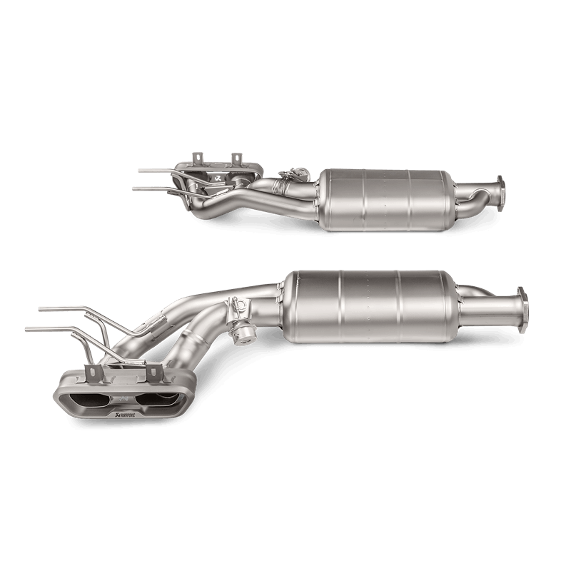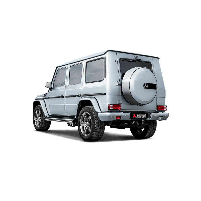 Układ wydechowy Evolution Line (Titanium), dedykowany do Mercedes-AMG G500 (W463). Dedykowany by auto było jeszcze mocniejsze przy jednoczesnym lepszym wyglądzie oraz mocniejszym basowym dźwięku Akrapoviča.