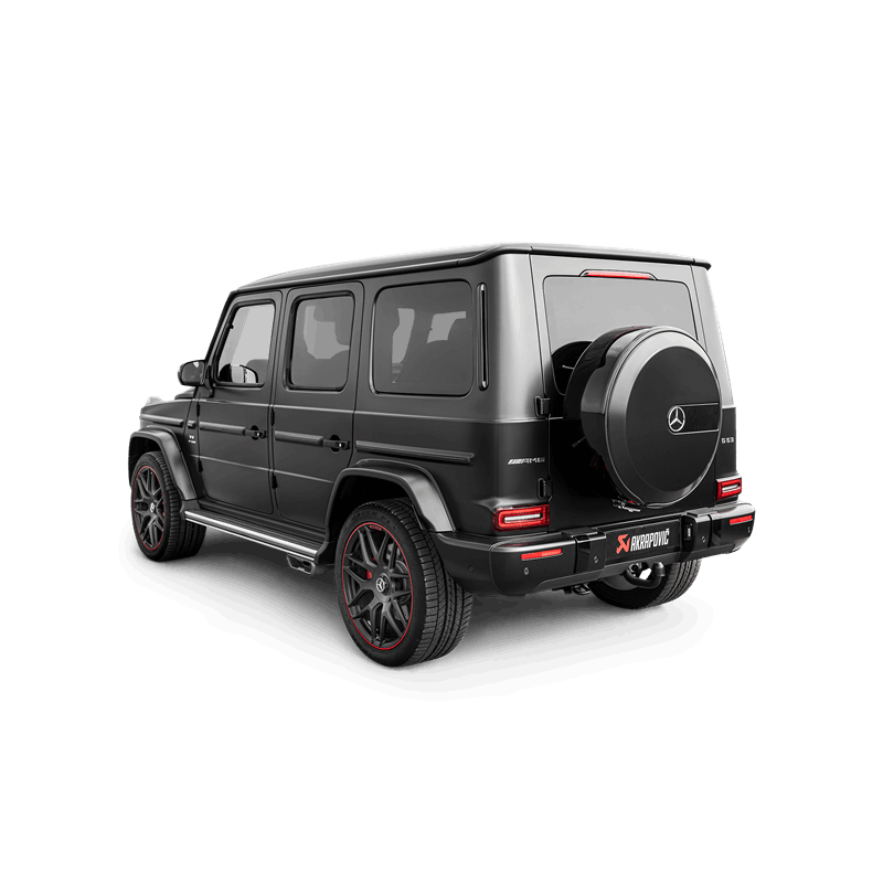Układ wydechowy Evolution Line (Titanium), dedykowany do Mercedes-AMG G63 (W463A) OPF/GPF. Dedykowany by auto było jeszcze mocniejsze przy jednoczesnym lepszym wyglądzie oraz mocniejszym basowym dźwięku Akrapoviča.