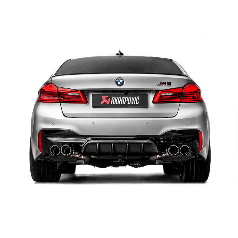 Układ wydechowy Slip-On Line (Titanium) z karbonowymi końcówkami, dedykowany do BMW M5 / M5 Competition (F90) - OPF/GPF 2018-2020. Dedykowany by auto było jeszcze mocniejsze przy jednoczesnym lepszym wyglądzie oraz mocniejszym basowym dźwięku Akrapoviča.