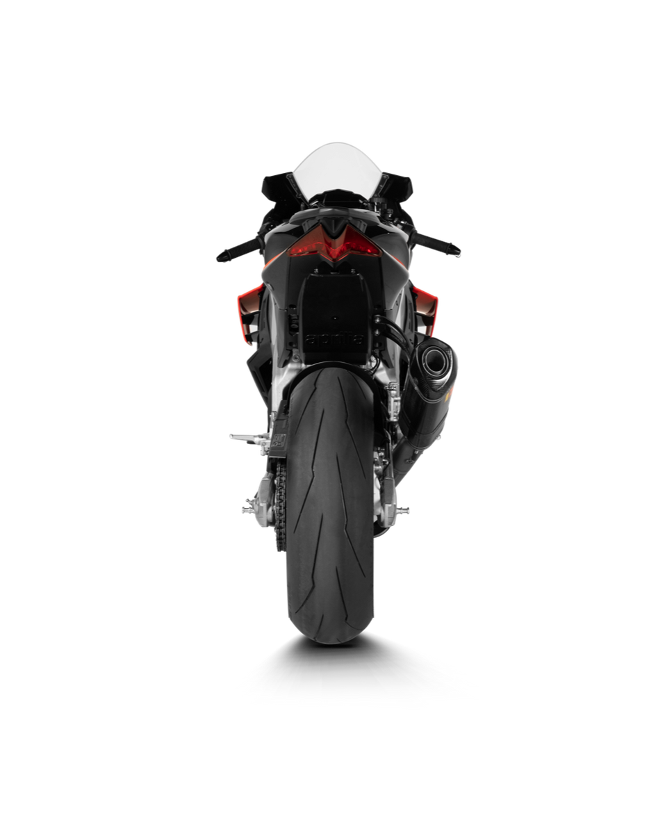 Połączenie sprawdzonych w wyścigach, lekkich materiałów, wyjątkowej jakości produkcji, doskonałego projektu, niesamowitego dźwięku i najwyższej wydajności sprawia, że ten wydech jest niezbędny dla wymagających rowerzystów, którzy wymagają tego, co najlepsze. Jest zbudowany z zewnętrznej tulei i zaślepki tłumika z włókna węglowego, z w pełni tytanową rurą łączącą i wewnętrzną konstrukcją tłumika , dopasowanymi do wysokiej jakości stopu tytanu w przypadku kolektorów i kolektorów , co daje w rezultacie cały układ, który jest o 44% lżejszy niż zapasy _ Ten system zorientowany na tor wyścigowy, opracowany do użytku na torach wyścigowych o zamkniętym torze, wymaga obowiązkowego ponownego mapowania i usunięcia podnóżka pasażera. Zapewnia wzrost mocy i momentu obrotowego o 4,0 kW (5,4 KM) przy 13 000 obr./min i 3,8 Nm przy 7700 obr./min w bezpośrednich porównaniach z Aprilią RSV4 ze standardowym układem fabrycznym na własnej hamowni. Ten opracowany na potrzeby wyścigów system zapewnia charakterystyczny, głęboki, sportowy dźwięk , doskonale potwierdzający charakter Akrapoviča.